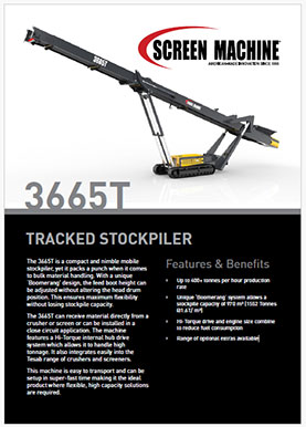 The 3665T is a compact and nimble mobile stockpiler, yet it packs a punch when it comes to bulk material handling. With a unique ‘Boomerang’ design, the feeder height can